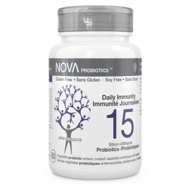 NOVA Probiotics Daily Immunity provides 15 billion live microorganisms naturally found in healthy human gut. The product is made to replenish beneficial intestinal bacteria for optimal digestive and immune systems functioning. The healthy bacteria it contains will help digest certain foods, while enhancing the protective barrier of the intestinal tract.